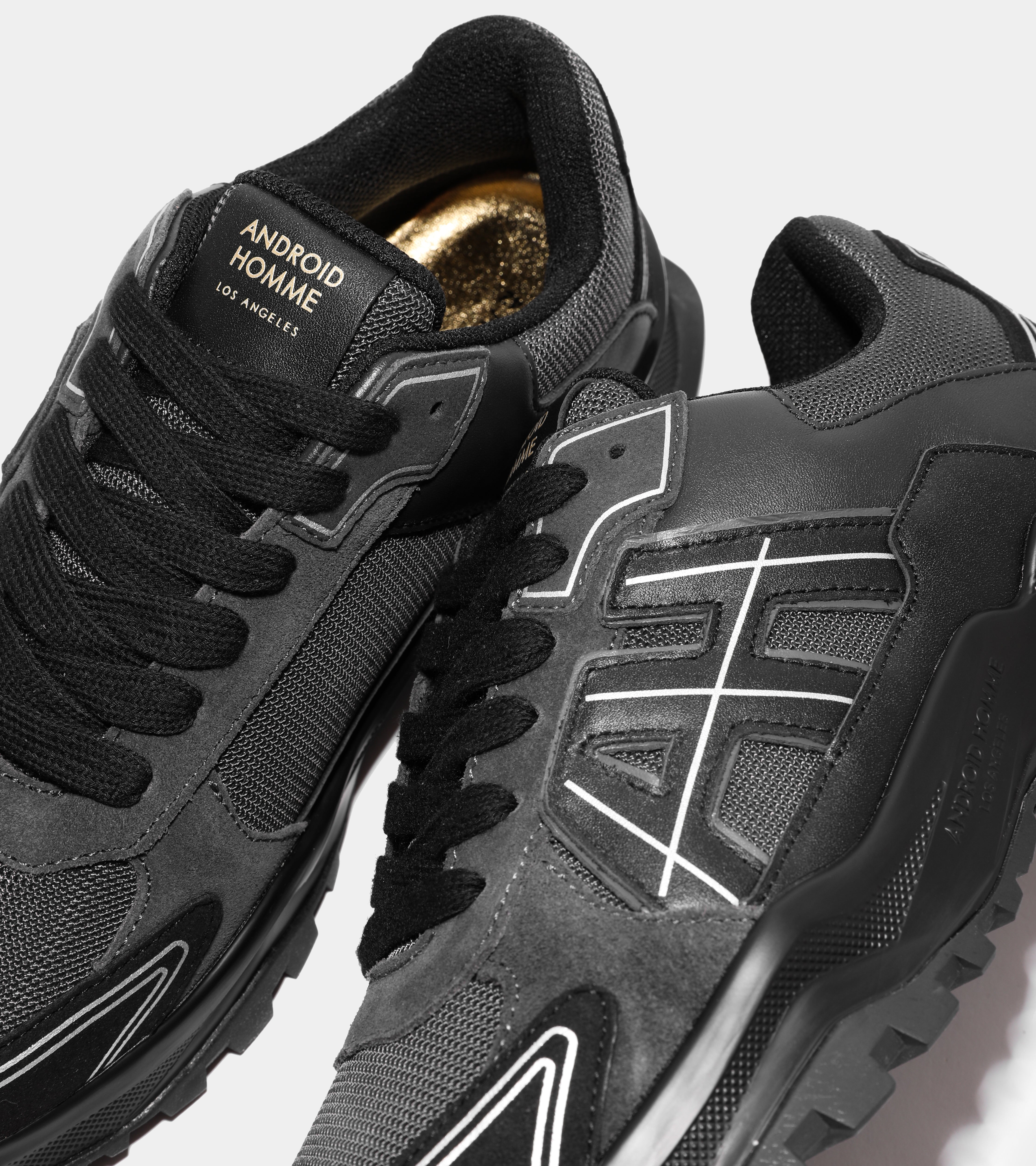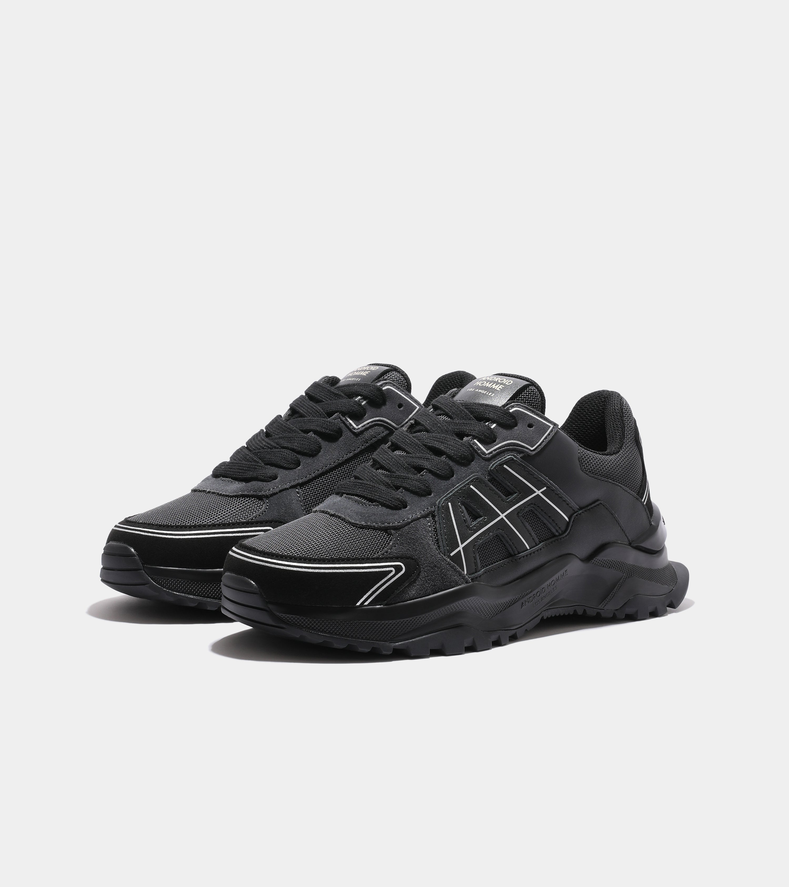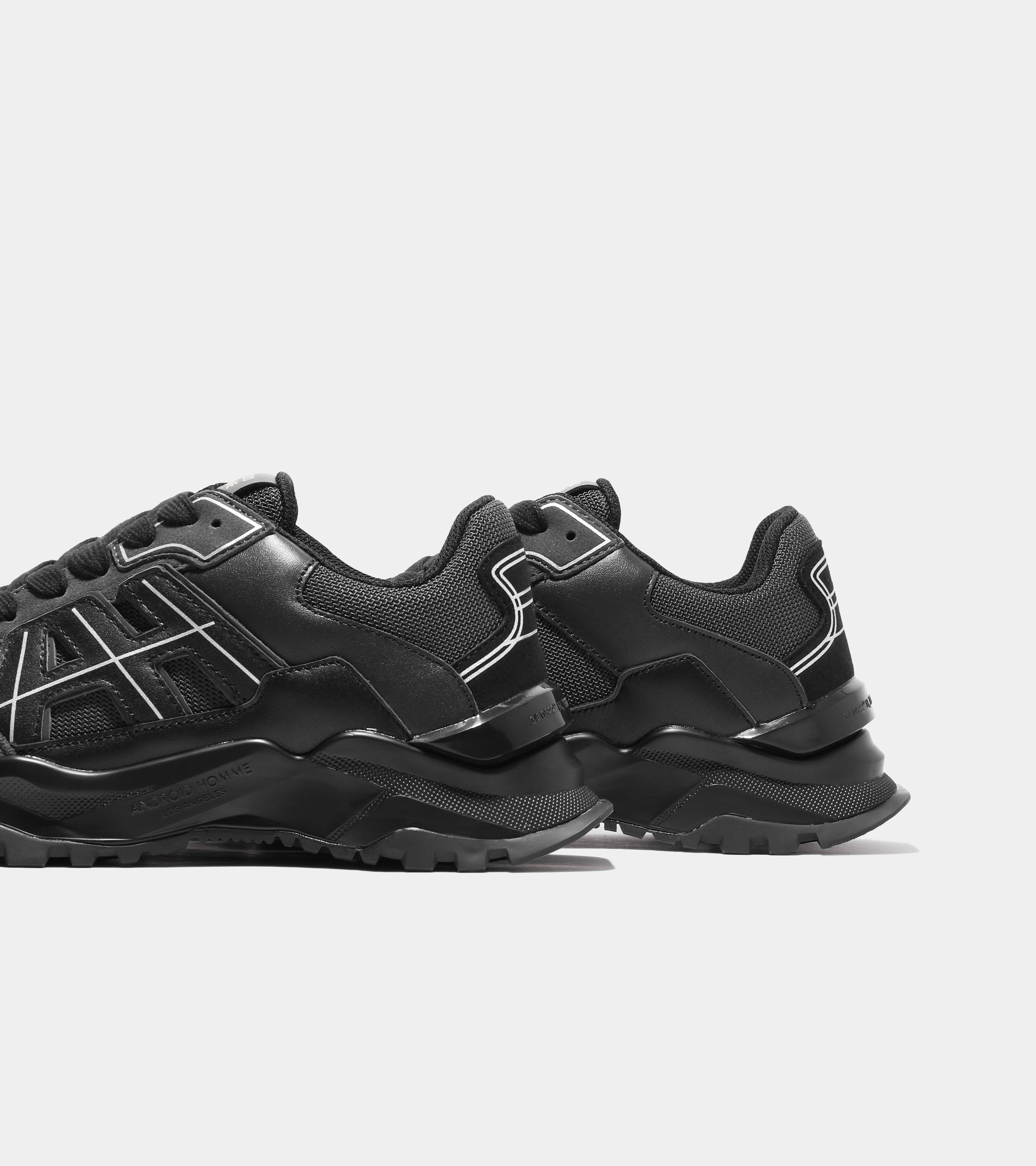 Introducing the One, a fresh silhouette in the Android Homme collection. This design features abstract AH logo side panels and refined printed line details across the upper. A carbon white fibre clip and high-gloss white outsole complete the look with modern elegance.