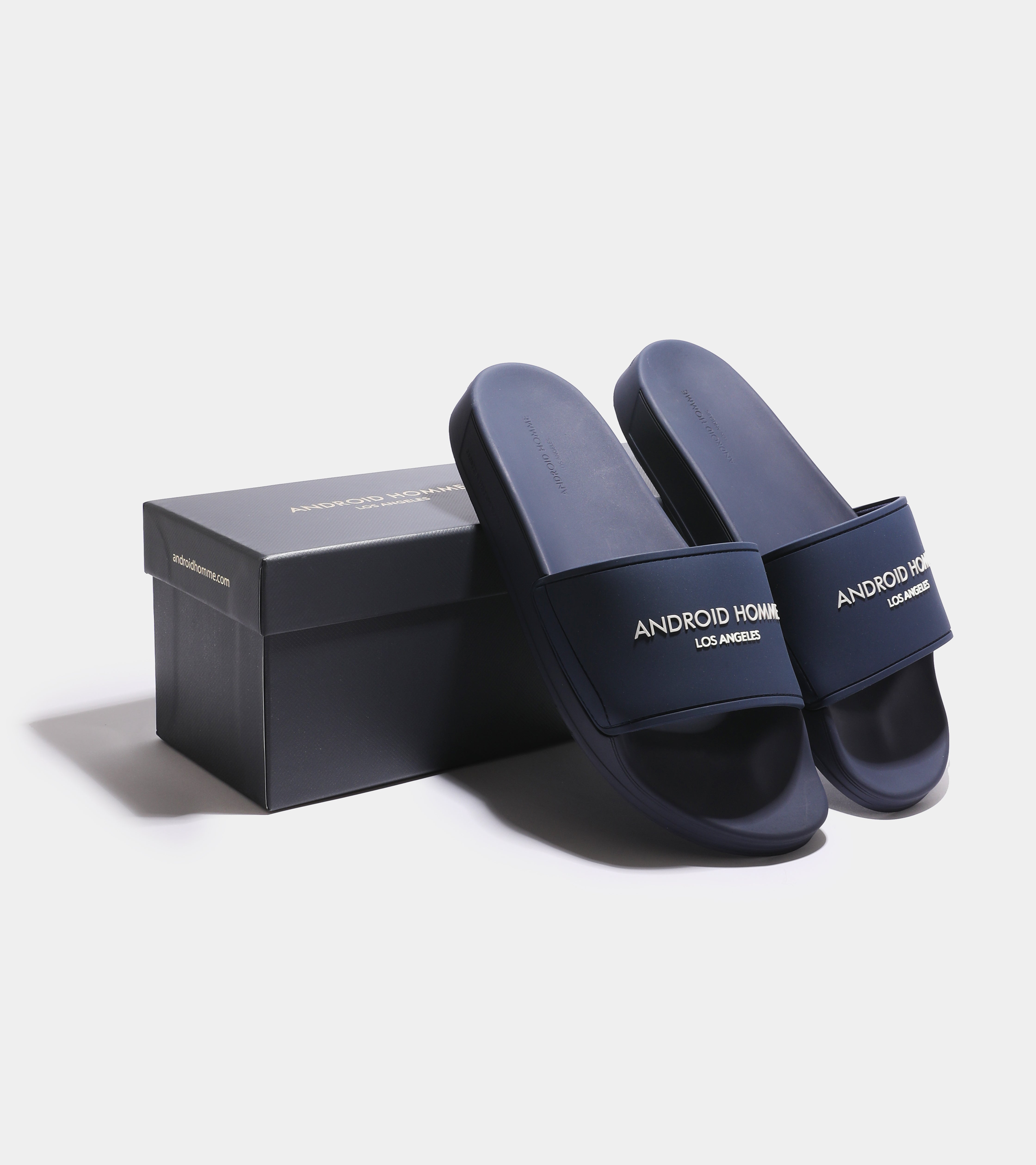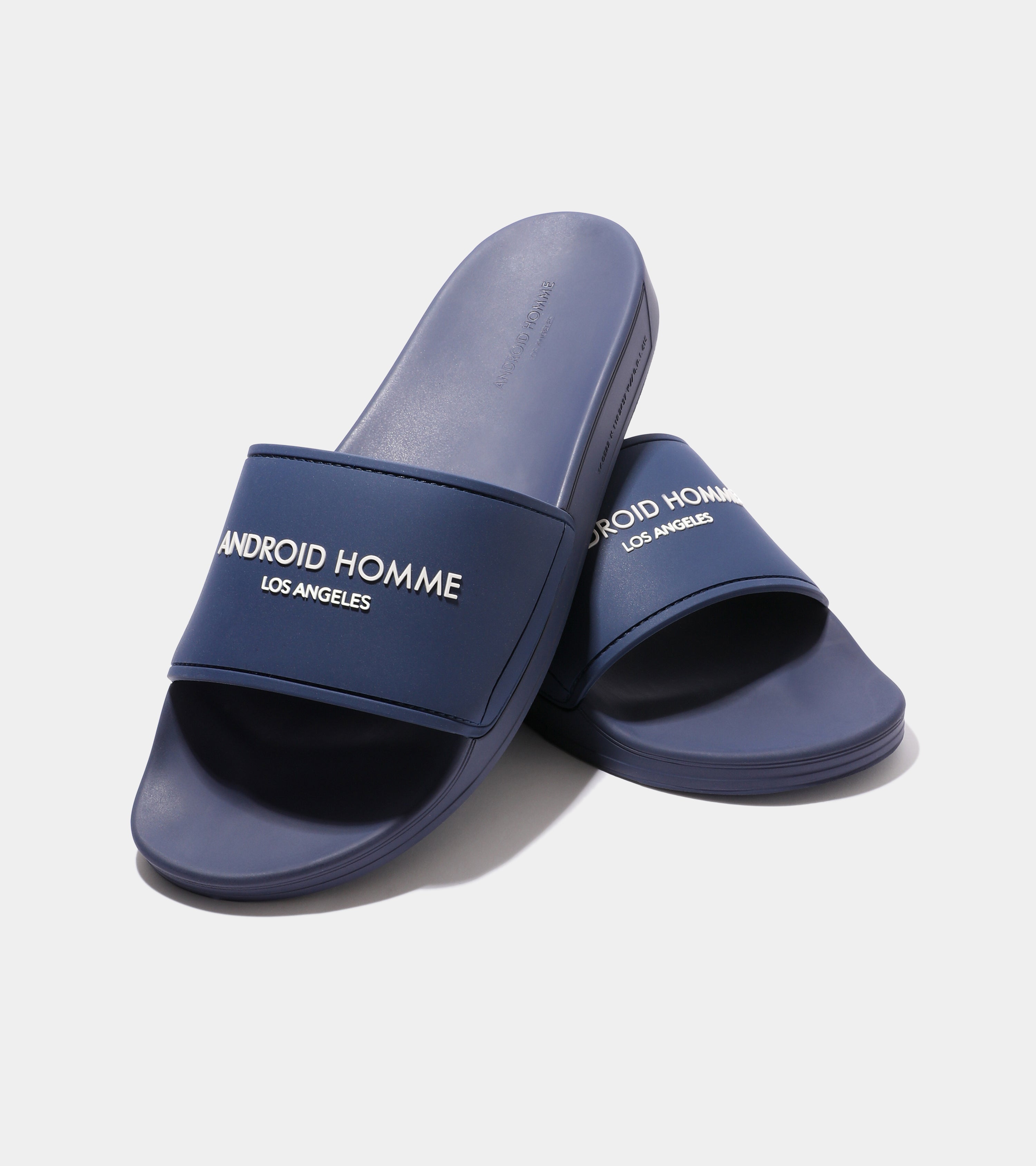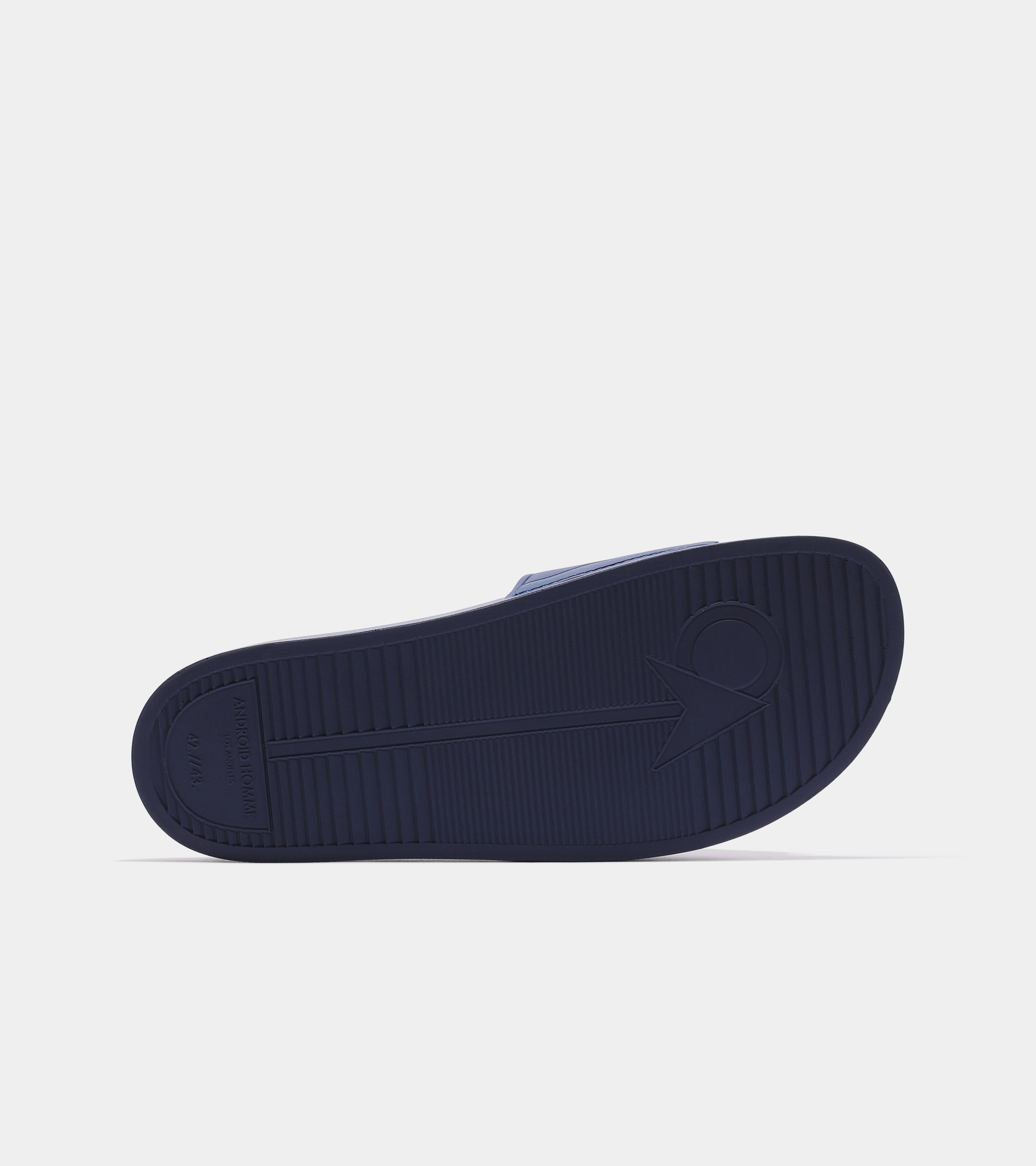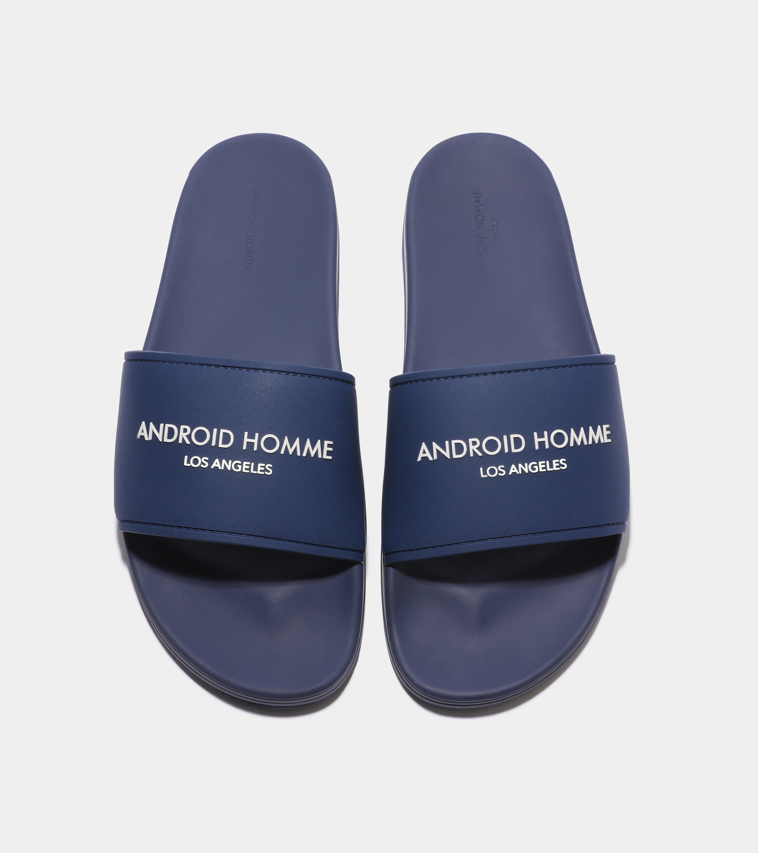 The Laguna Beach Slides deliver a relaxed, minimalist look with a central logo band and a footbed with the outsole tread inspired by Android Homme's signature design, perfect for effortless style.