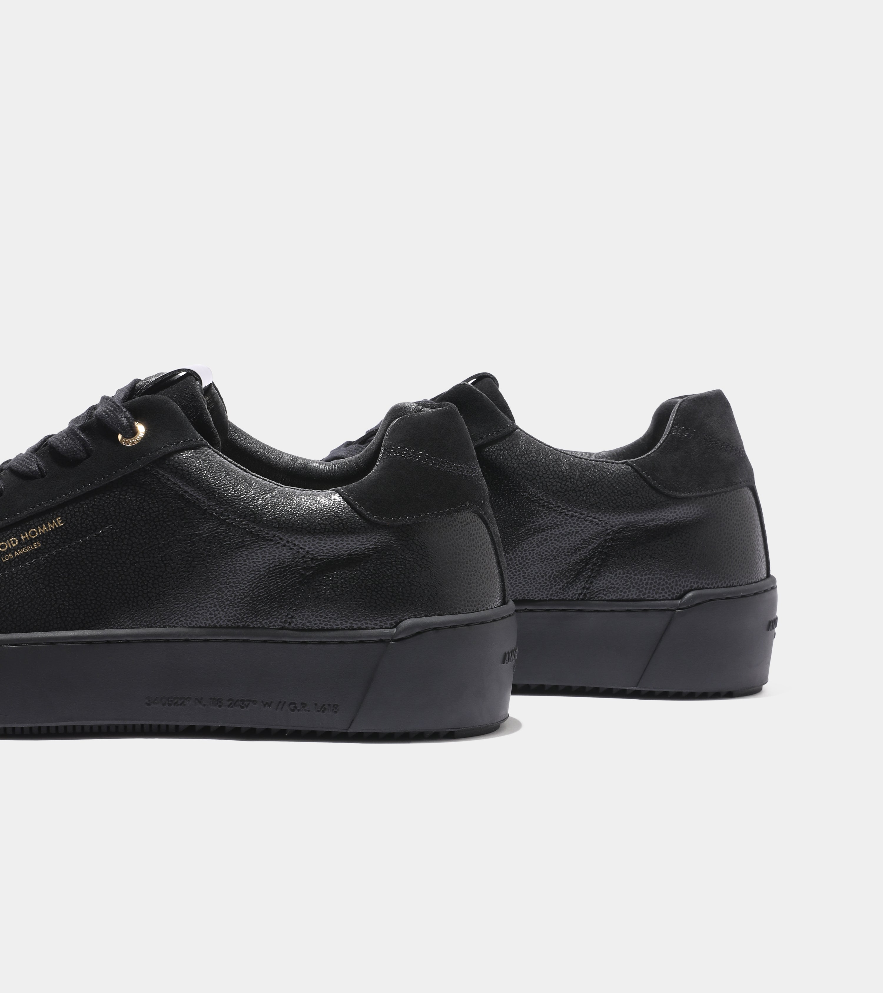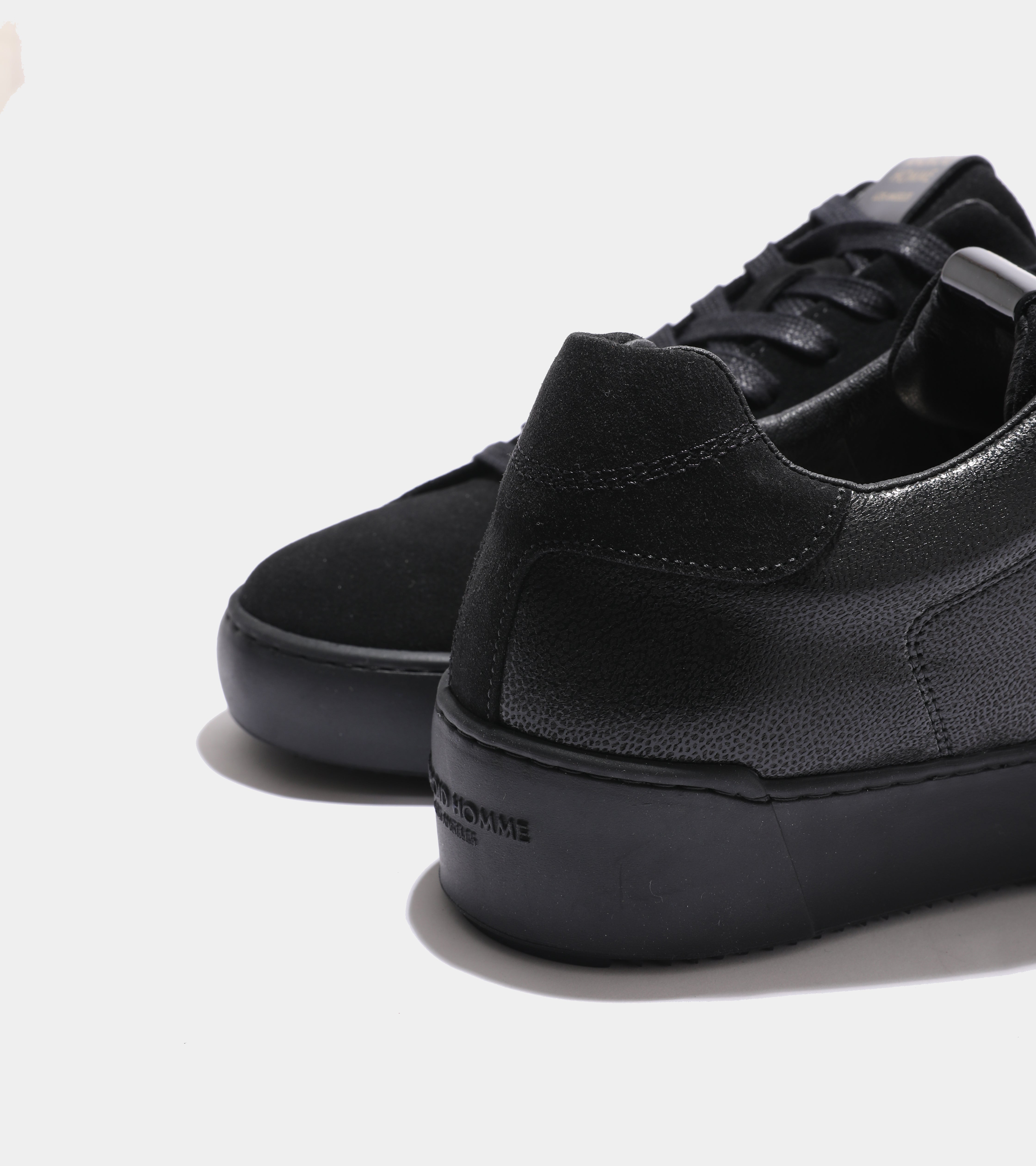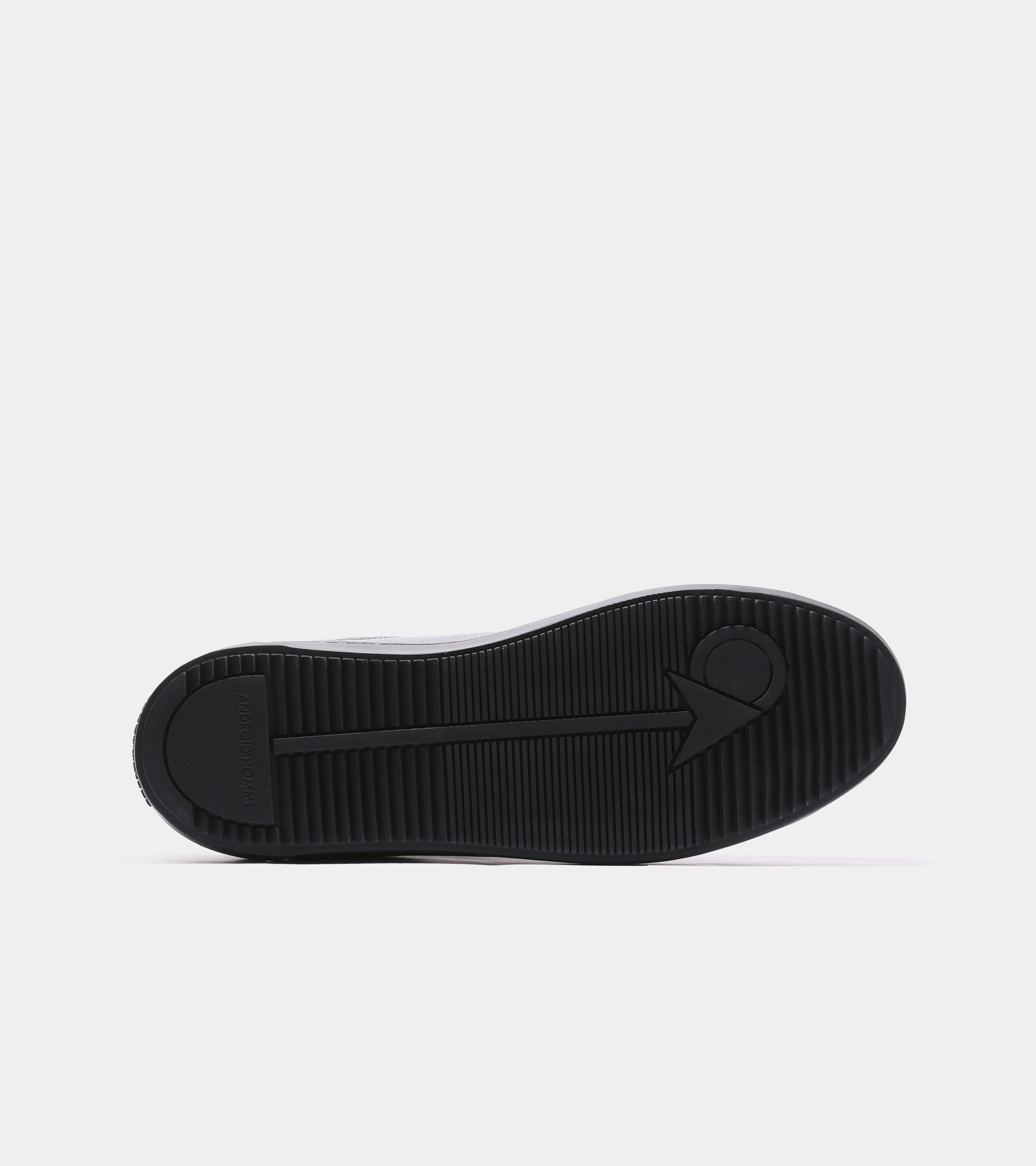 Subtle patent leather trims introduce a polished contrast, while the silhouette is grounded by an exclusive custom rubber outsole featuring a heel‑embossed logo for a clean, signature finish. The result is a luxurious yet understated expression of modern style.